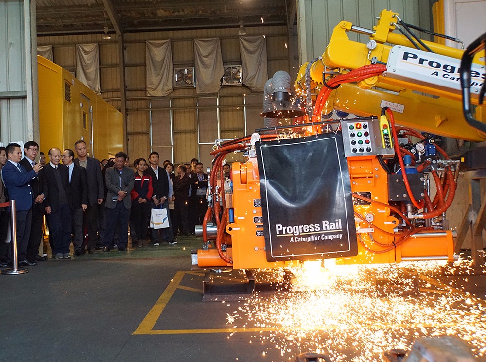 在啟世機械的焊軌機車間,與會代表觀看了采用烏克蘭巴頓電焊研究院焊接專利技術的BHP澳洲標準焊軌機現(xiàn)場焊接演示。